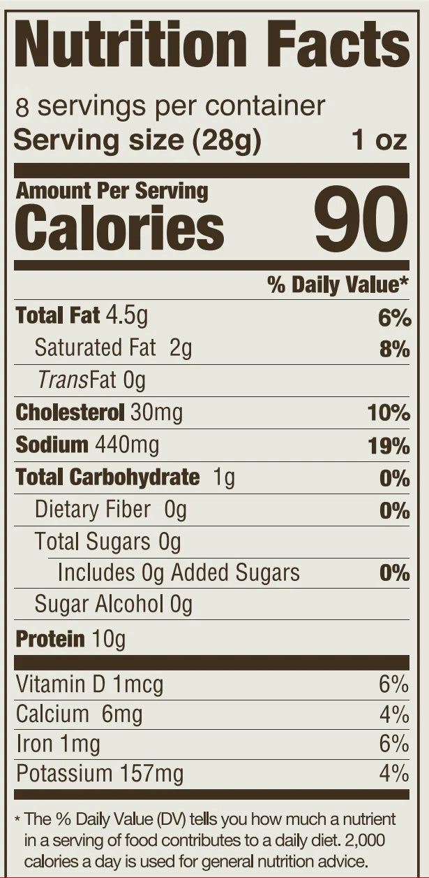 Perfect for parties, or snacking at the house. Slice thinly and put it on avocado toast, in an omelette, pair with cheese, or eat it plain!
