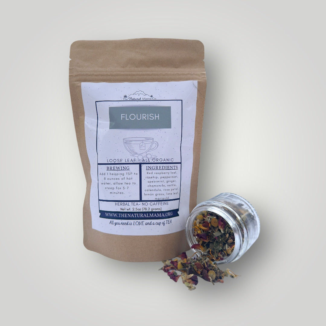 “Flourish” by The Natural Mama Co. is more than just a tea; it’s a wellness ritual designed to elevate every aspect of your being. Tailored for women’s health, this herbal loose leaf blend goes beyond the ordinary, offering a sanctuary in a cup. As you sip on Flourish, feel the gentle embrace of its soothing essence, promoting physical vitality and a harmonious balance of the mind.