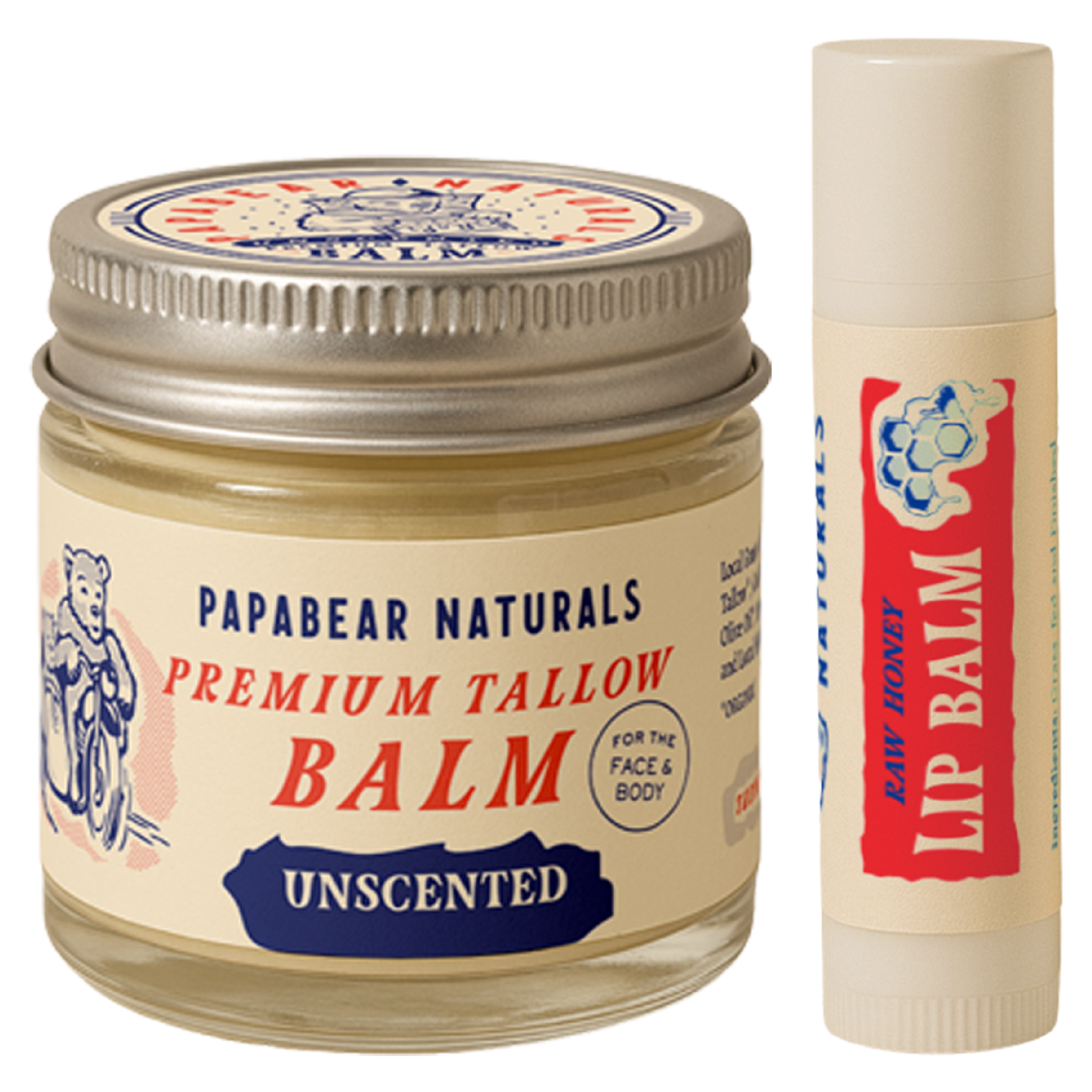 Two of our most popular goods—the Original All-American Tallow Balm with Now-Viral Tallow Lip Balm. Whether it’s lackluster skin or dry lips, this duo was built for deep, long-lasting hydration and nourishment—one clean, honest ingredient at a time.