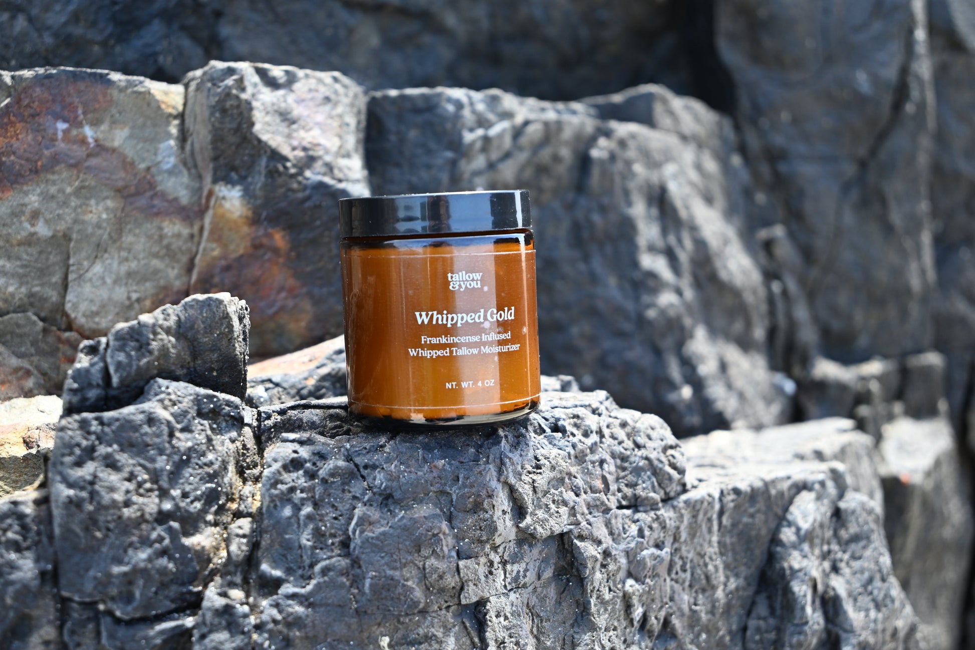 This formula contains 100% grass-fed and finished beef tallow, including vitamins A, E, D, K, B12, omega fatty acids, palmitic, ascorbic and stearic acid, infused frankincense resin in jojoba oil.